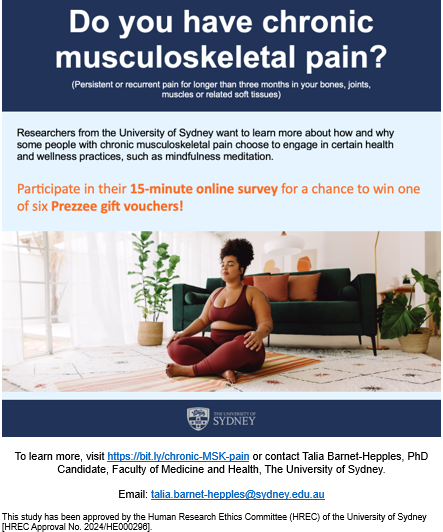 Are you an adult with chronic musculoskeletal pain living in Australia or New Zealand? Participate in this survey for a chance to win one of six Prezzee gift vouchers!
